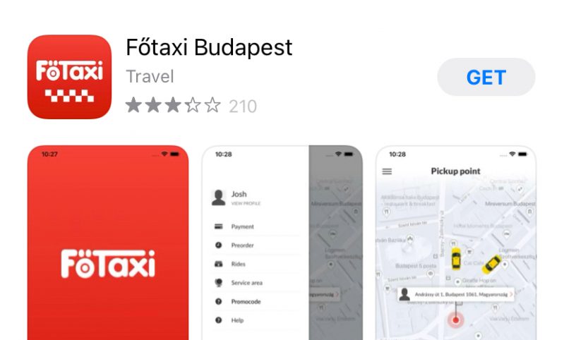 לחברת FŐTAXI אפליקציה משלה דרכה תוכלו גם כן לשריין מונית לפי מיקומכם. האפליקציה נותנת אנדיקציה בנוגע לזמן ההמתנה הצפוי עד לאיסוף, פרטים אודות מיקום המונית, שם הנהג ומחיר נסיעה משוער.